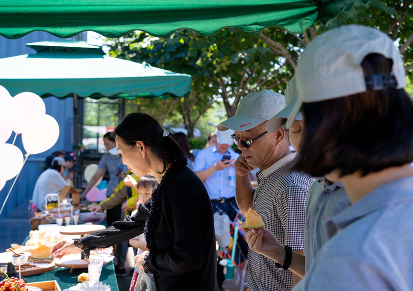 在D座門(mén)口的觀光臺(tái)上,設(shè)置了冷餐區(qū)域,有甜點(diǎn)、蛋糕、飲料,供大家品嘗飲用,微風(fēng)掠過(guò),陽(yáng)光正好,洋溢在每一位星沃家人臉上的笑臉,是幸福,是享受。孩子們追捉打鬧著,老人們安逸的坐在樹(shù)蔭下聊天喝茶,此時(shí)此刻的大家,是一個(gè)溫馨飽滿的大家庭。