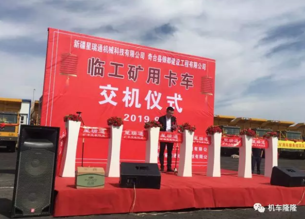 2019年9月9日上午12時,由星沃股份新疆星瑞通機械科技有限公司主辦的“新疆星瑞通機械科技有限公司與奇臺縣銀都建設(shè)工程有限公司15臺臨工礦卡交機儀式”在奇臺縣蔣軍廟戈壁二號露天煤礦隆重舉行!